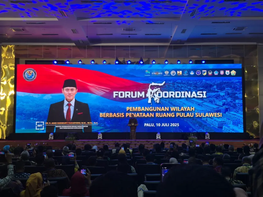 Penjabat (Pj) Wali Kota Palopo, Firmanza DP, menghadiri Forum Koordinasi Pembangunan Wilayah Berbasis Penataan Ruang Pulau Sulawesi yang diselenggarakan di Gedung Wanita Widara Wasia, Kota Palu, Sulawesi Tengah, Kamis (10/7/2025).…