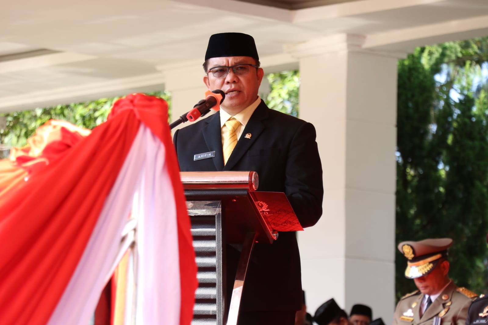 LUWU TIMUR - Ketua DPRD Luwu Timur, Aripin, didaulat membacakan Naskah Pesan…