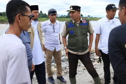 Bupati Luwu Utara, Andi Abdullah Rahim, meninjau progres pembangunan tanggul di Desa…