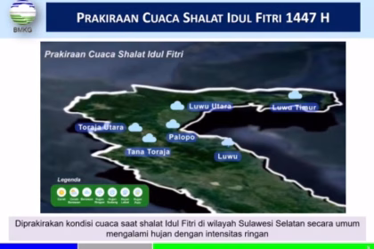 BMKG Prediksi Cuaca Mudik di Luwu Raya Didominasi Hujan Ringan