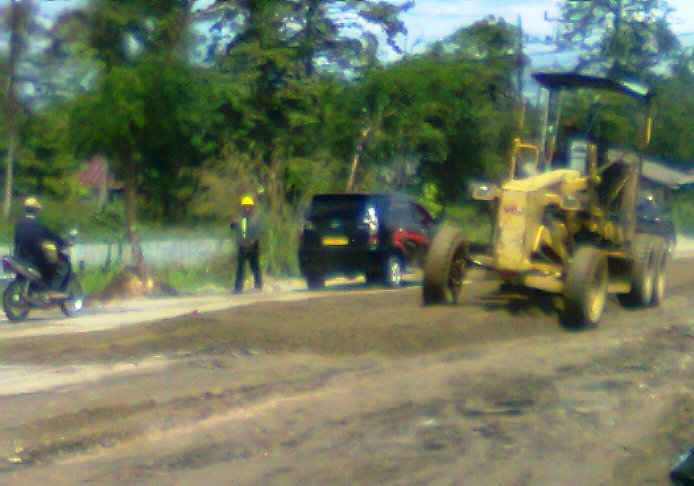 Selain itu, masih banyak lubang-lubang pada bahu jalan yang sudah digali oleh pekerja belum di tempel dan di beberapa titik tumpukan material batu kerikil yang berada di bahu jalan mengganggu arus kendaran yang melintas.