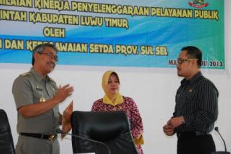 Untuk membenahi hal tersebut, Pemerintah Kabupaten Luwu Timur (Lutim) melalui Bagian Organiasasi dan Kepegawaian melakukan pembinaan-pembinaan dalam rangka meningkatkan kinerja pelayanan publik yang dilaksanakan di Aula Kantor Bupati Lutim, Sabtu (27/7/13).