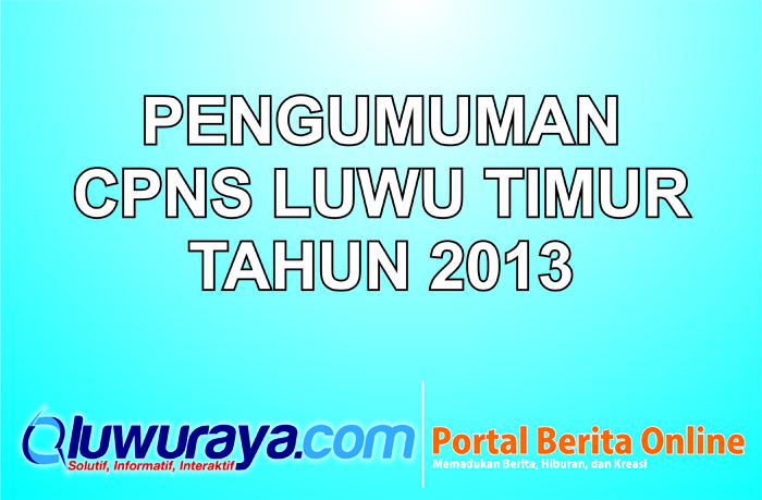 Pengumuman formasi Calon Pegawai Negeri Sipil (CPNS) Kabupaten Luwu Timur, yang akan mulai diumumkan pada Senin (9/9/13) mendatang bisa dilihat di Portal Berita Online www.luwuraya.com, mulai pukul 00.00 Wita.