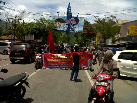 Setelah berorasi sekitar 20 menit di depan Warkop Dinasti puluhan massa ini kemudian melakukan long march sepanjang jalan DR Ratulangi menuju lampu merah di depan Kampus 2 Universitas Andi Djemma (UNANDA) sambil membagikan selebaran pernyataan sikap mereka kepada para pengguna jalan yang melintas di jalan yang mereka lalui saat longmarch.
