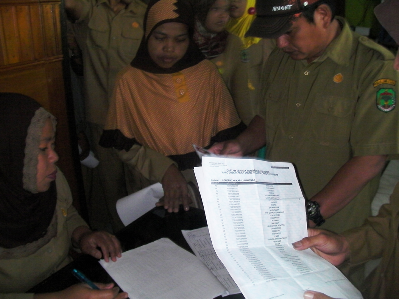 “Kami mengecam tindakan BKDD yang tidak menjunjung tinggi azas transparansi publik dalam bekerja, harusnya mereka bekerja sesuai dengan mekanisme yang ada, pada surat edaran Kemenpan & RB Nomor : B/789/M.PAN/2/2014 Perihal Pengumuman kelulusan peserta seleksi CPNS tahun 2013 dan Tenaga Honorer Kategori II pada poin dua dan empat sangat jelas tertera bahwa pejabat pembina kepegawaian wajib menempelkan daftar peserta seleksi honorer kategori II yang dinyatakan lulus di papan pengumuman atau dengan cara lain, selain itu rekomendasi DPRD Lutra juga mendesak agar pelaksanakan verifikasi honorer K-2 dilakukan dengan prinsip transparan dan dapat di pertanggung jawabkan,” Ungkap Rival.