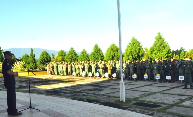 Pasca menikmati libur dan cuti bersama Hari Raya Idul Fitri 1435 Hijriah tahun ini, para pegawai lingkup Pemerintah Kabupaten Luwu Timur mengikuti apel bersama yang dipimpin langsung Bupati Luwu Timur, H Andi Hatta Marakarma di Halaman Kantor Bupati, Senin (04/8). Apel bersama ini memang rutin diagendakan setiap tahunnya pasca libur untuk