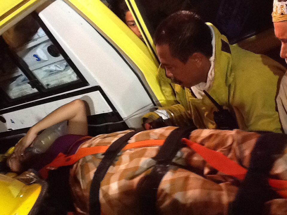 Sarina (29) saudara dari istri Jafar (korban kebakaran) dilarikan ke Pusat Kesehatan Masyarakat (puskesmas) terdekat karena mengalami cidera pada bagian tulang punggung akibat melompat dari rumah saat kebakaran terjadi, Rabu (05/11/14) sekitar pukul 10.45 wita malam ini.