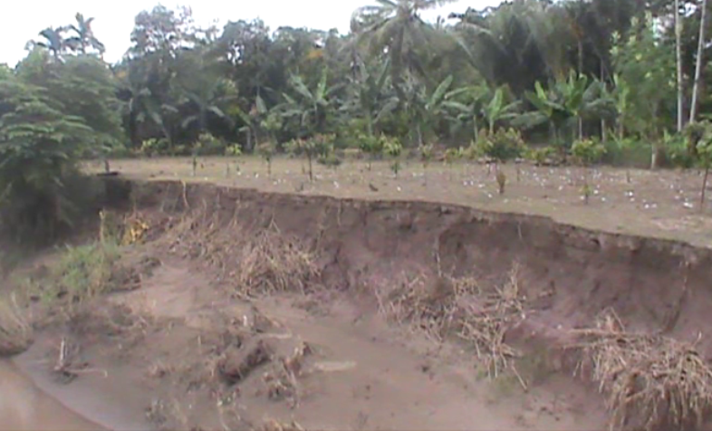 Isman, warga Desa Wonosari mengatakan akibat banjir, areal lahan warga ikut tergerus air sehingga mengakibatkan kerugian bagi warga.