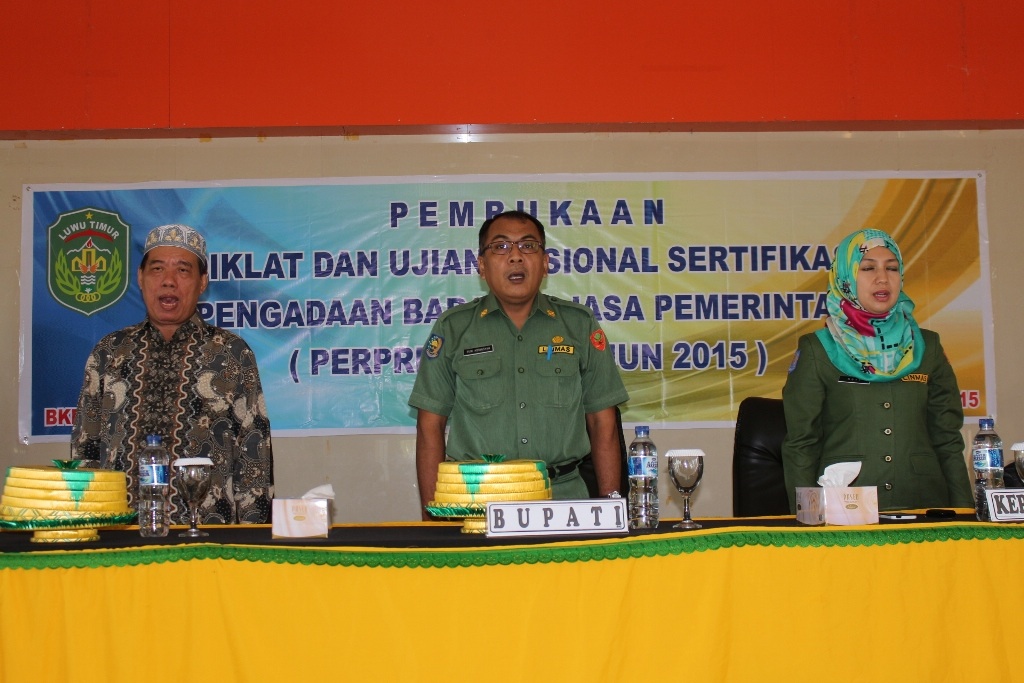 Pemerintah Kabupaten Luwu Timur melalaui Badan Kepegawaian Pendidikan dan Pelatihan Daerah (BKPPD) Luwu Timur menggandeng Lembaga Penelitian dan Pengabdian Masyarakat (LP2M) Makassar melaksanakan diklat dan ujian sertifikasi barang dan jasa yang diikuti 40 peserta dari seluruh SKPD di Gedung Wanita Simpurusiang Malili.
