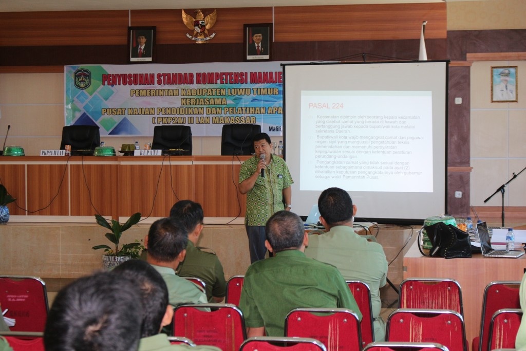 Lanjut Adam, kegiatan ini berlangsung selama tiga hari 27 hingga 29 April 2015 yang diikuti para Sekretaris dan Kasubag Kepegawaian SKPD serta Sekretaris Camat dan Lurah se Kabupaten Luwu Timur. DR Sulaeman Fattah, dari PKP2A II LAN bertindak selaku narasumber.