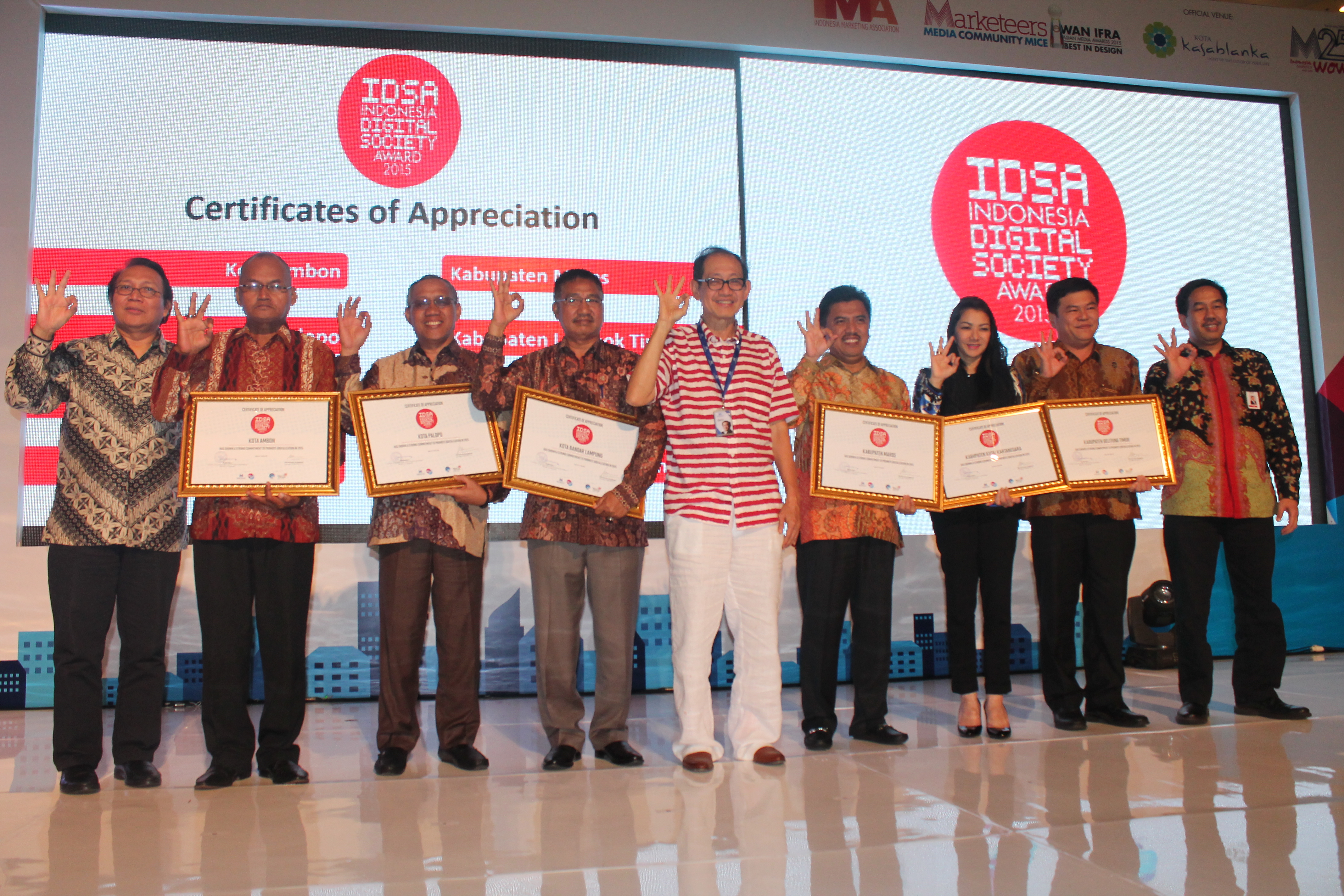 Pemerintah Kota Palopo meraih penghargaan Indonesia Digital Society Award 2015, untuk kategori Certificate of Appreciantion, yang diserahkan langsung oleh Menteri Komunikasi dan Informatika, Rudiantara, di Grand Mall Kota Kasablanka Jakarta, Rabu (6/5/15) pukul 20.00 Wita, malam tadi. Penghargaan itu diterima oleh Sekretaris Kota Palopo Muhammad Kasim Alwi, didampingi Kepala Bagian Humas dan Protokol Pemkot Palopo Baso Akhmad, dan Kepala Sub Bidang (Kasubid) Pengolahan Sistem Elektronik Bappeda Kota Palopo Ramlan.