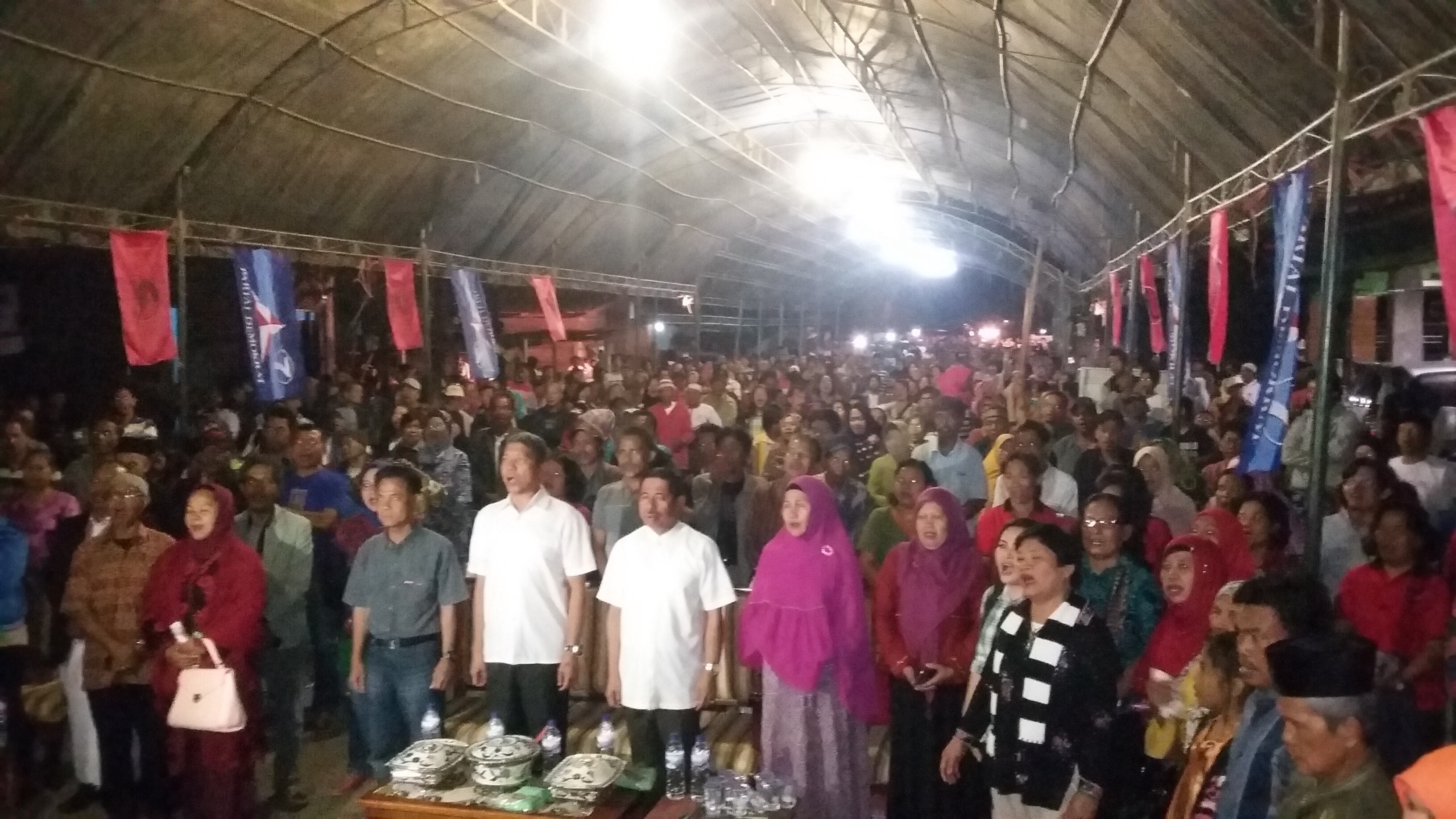 Bentuk kesyukuran itu dilakukan warga dengan cara mengumpulkan duit secara sukarela untuk menyembeli sapi. Selain itu, kegiatan syukuran ini juga dirangkaikan dengan pengukuhan tim pemenangan pasangan Nur Husain dan Esra Lamban.