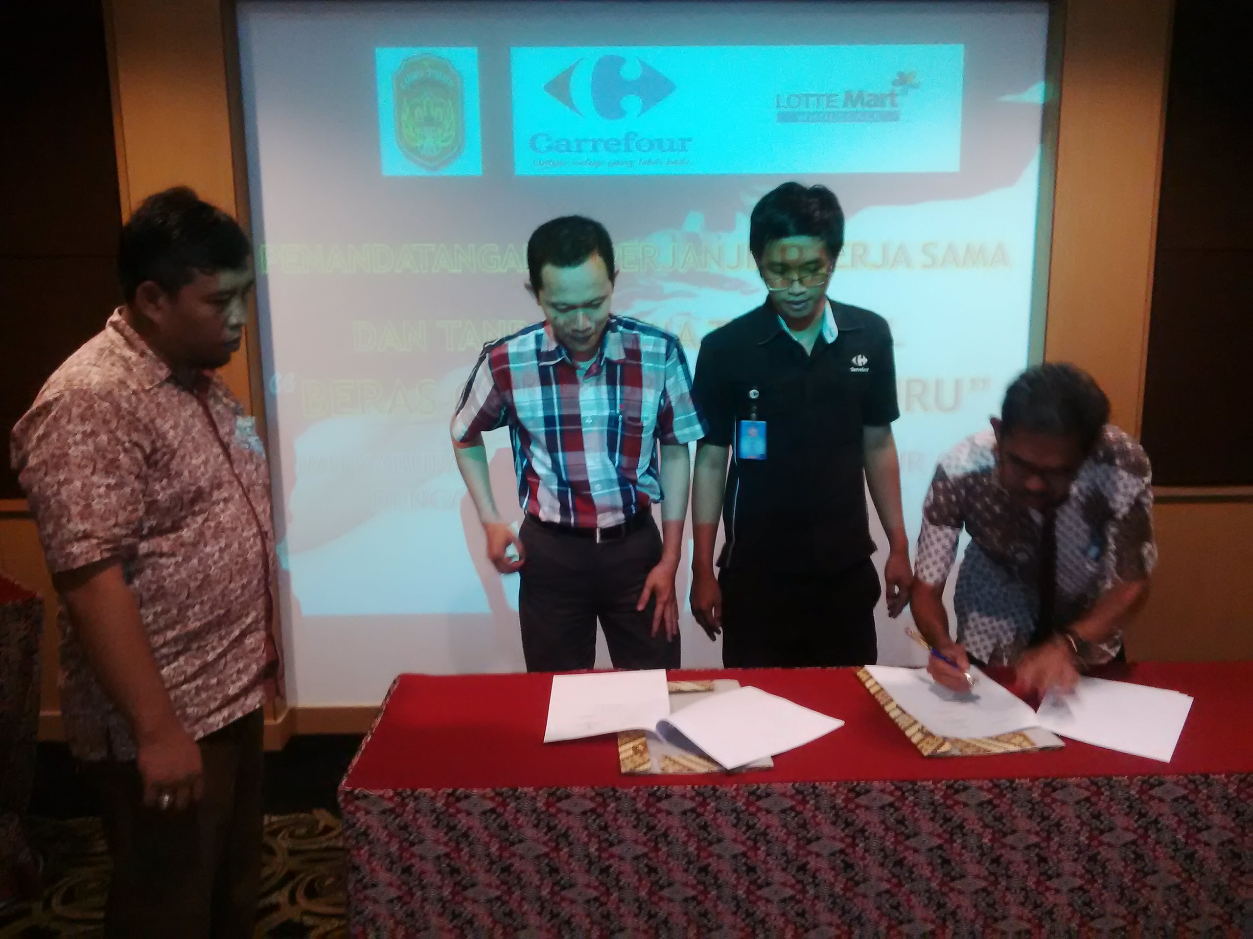 Penandatanganan kerjasama atau MoU pemasaran produk beras organik ini dilakukan tiga pihak antara BUMD Luwu Timur, PT Bumi Timur Agro, Bakri Madong, dari pihak Lotte Mart, Christian, dan dari pihak Carrefour, Albert Sarungallo disaksikan Penjabat Bupati Luwu Timur, Irman Yasin Limpo dan Wakil Ketua DPRD, Aris Situmorang.