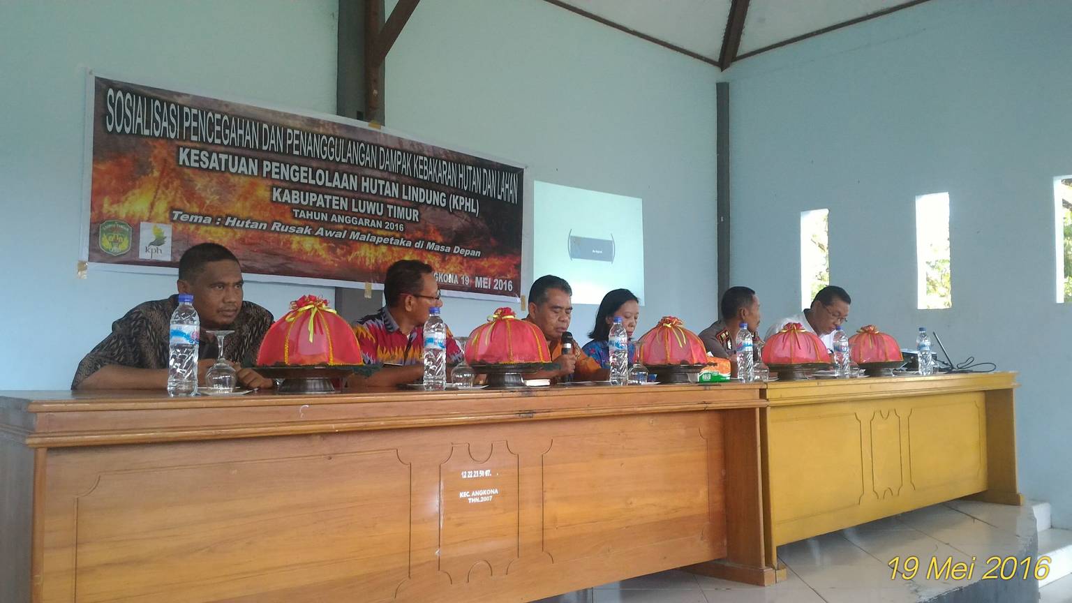 Kesatuan Pengelolaan Hutan Lindung (KPHL) Kabupaten Luwu Timur menggelar sosialisasi pencegahan kebakaran hutan dan lahan yang berlangsung digedung pertemuan kecamatan Angkona, Kamis (19/5/16).