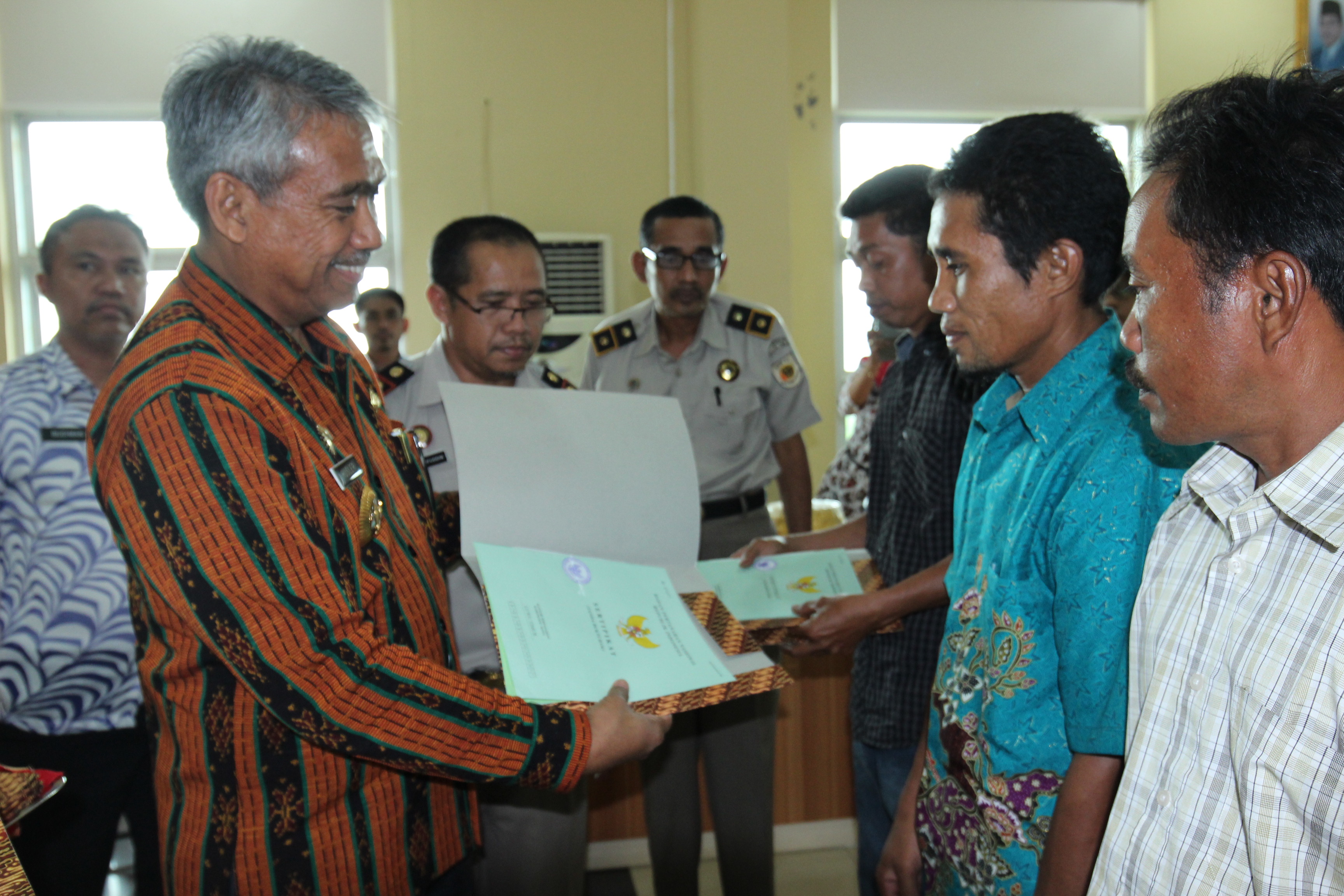 Penyerahan sertipikat tersebut dilakukan secara simbolis oleh Bupati Luwu Timur H.M. Thorig Husler di Aula Sasana Praja Kantor Bupati Luwu Timur, Kamis (25/08/2016).