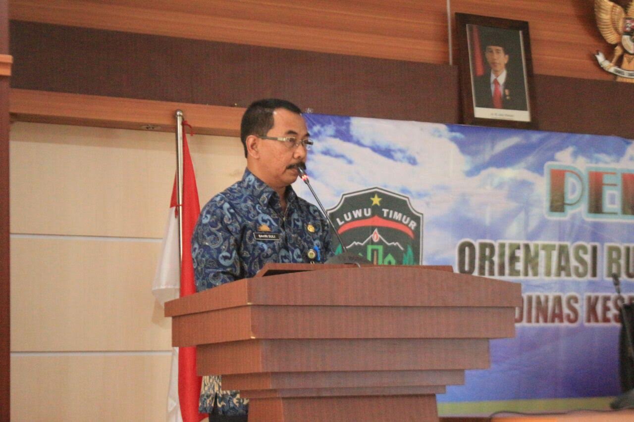 Sekertaris Daerah Kabupaten Luwu Timur, Bahri Suli membuka acara Sosialisasi Rumah Tunggu Kelahiran (RTK) Program Jaminan Persalinan ( Jampersal ) tahun 2017 yang diselenggarakan oleh Dinas Kesehatan yang di pusatka di Aula Sasana Praja Kantor Bupati, Jumat (31/03/2017).