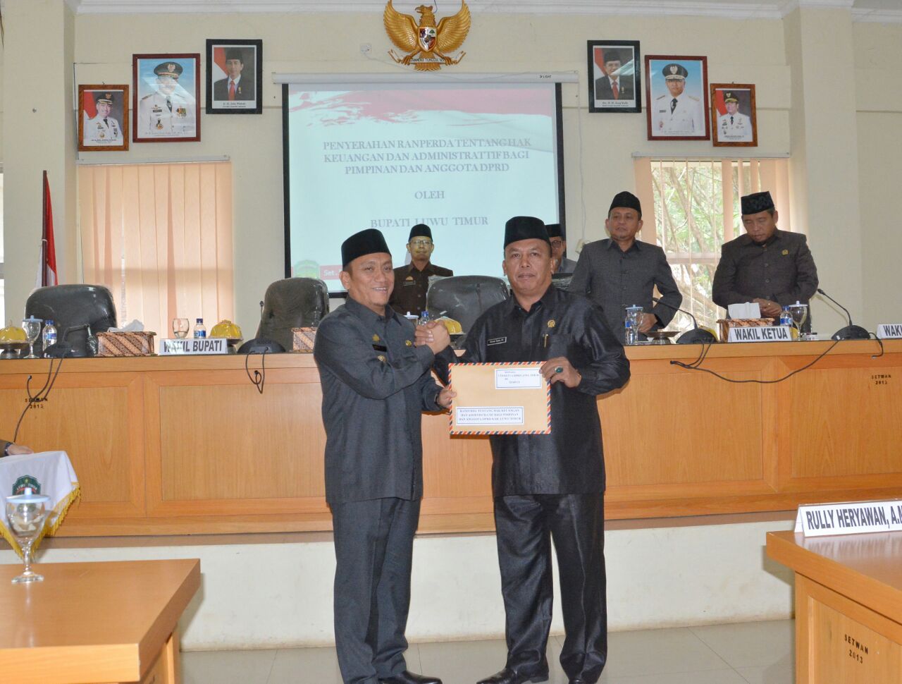 Dewan Perwakilan Rakyat Daerah (DPRD) Luwu Timur telah menerima Ranperda tentang hak keuangan dan administratif Pimpinan dan anggota DPRD dari Pemerintah Daerah (Pemda) Luwu Timur.