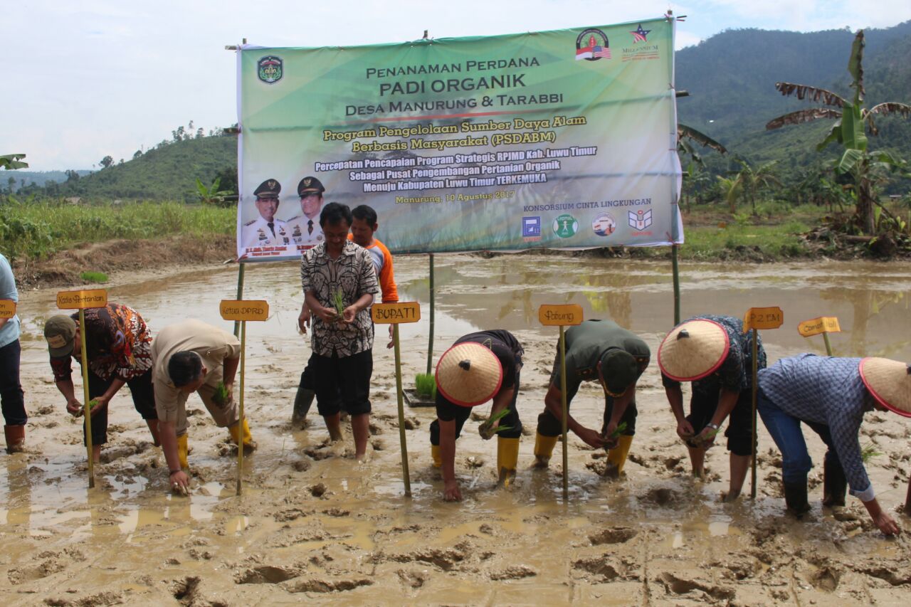 Pemerintah Kabupaten Luwu Timur terus berupaya mengajak petani mengembangkan produksi beras organik di Luwu Timur. Pasalnya Pemerintah daerah menargetkan beras organik sebagai salah satu komoditi unggulan daerah. Seperti yang terlihat di Desa Manurung Kecamatan Malili, Bupati Luwu Timur, HM Thorig Husler bersama jajaran Forkopimda melakukan tanam perdana padi organik, Kamis (10/08/2017).