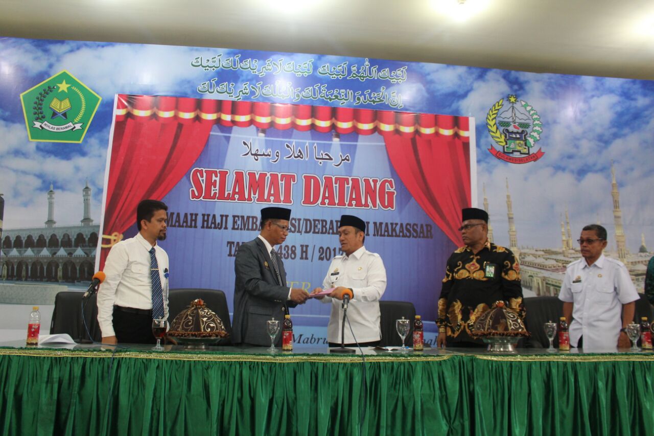 Diawali sambutan penyerahan dari Sekertaris PPIH Sulsel, H.Kaswad menyampaikan terima kasih atas kerjasama semua pihak khususnya jamaah haji sehingga penyelenggaraan haji berjalan dengan baik dan lancar