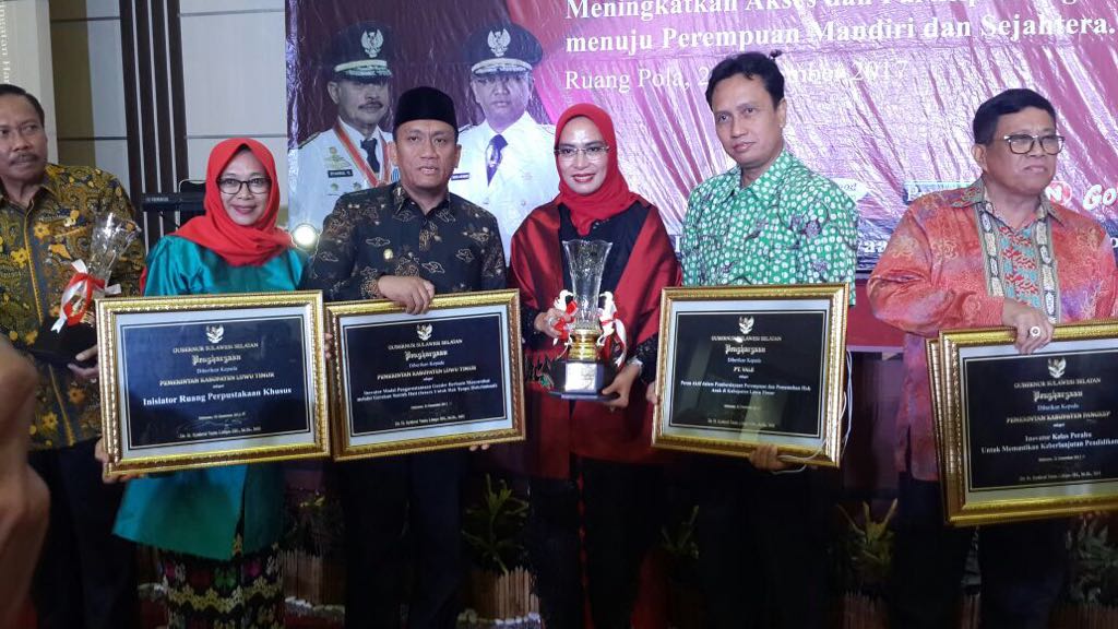 kemudian sebagai Kabupaten Terbaik atas inovator model pengarustamaan gender berbasis masyarakat dan terakhir, sebagai Kabupaten Terbaik peran aktif dunia usaha dalam pemberdayaan perempuan dan pemenuhanan hak anak di Luwu Timur.
