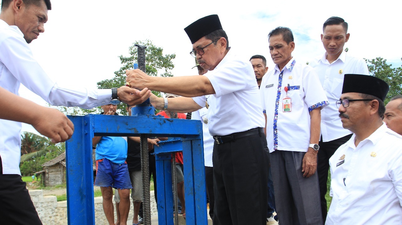 Wali Kota Palopo HM Judas Amir, meresmikan penggunaan Bendung Suplesi Sendana Daerah Irigasi Mawa, Kelurahan Sendana Kecamatan Sendana Kota Palopo, Rabu 7 Februari 2018.