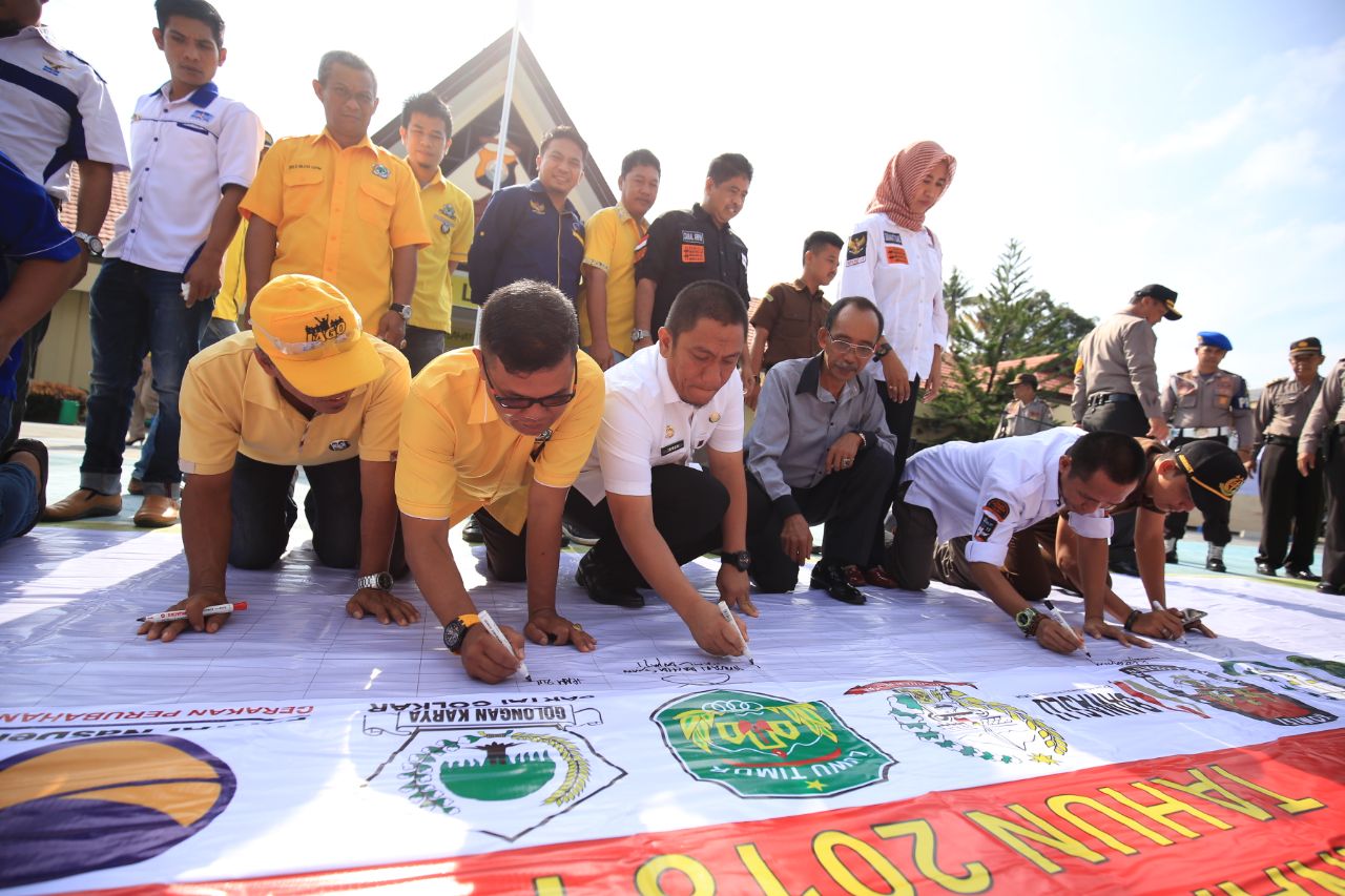“pembacaan ikrar ini sebagai komitmen moral dalam menjaga kamtibmas selama pelaksanaan kampanye, dengan sikap saling menghormati antar sesama pendukung paslon, tidak melakukan hal-hal yang menimbulkan potensi kerawanan dan akan menaati peraturan perundang-undangan dan hukum yang berlaku,”katanya.