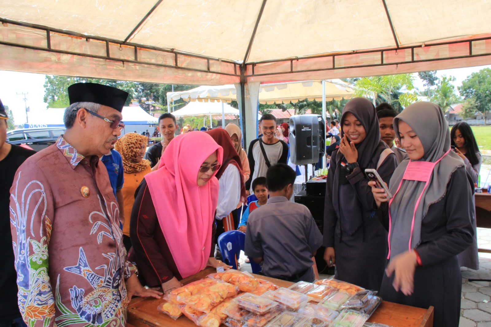 Bupati Luwu Timur, HM Thorig Husler bersama istri, Puspawati Husler menyempatkan mengunjungi stand jualan para pelajar tersebut. Bahkan Bupati juga membeli beberapa jajanan yang ditawarkan para pelajar tersebut.