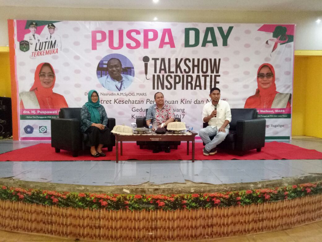 Terkait dengan Talkshow yang mengambil tema “Potret Kesehatan Perempuan Kini dan Nanti”, Ketua TP-PKK Kabupaten Luwu Timur Hj. Puspawati mengatakan, kegiatan tersebut merupakan program untuk melindungi para perempuan dari bahaya penyakit Kanker Payudara dan Kanker Mulut Rahim.
