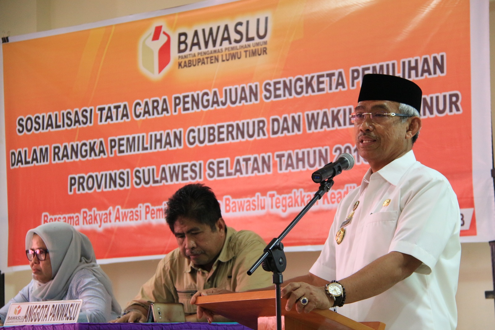 Panitia Pengawas Pemilihan Umum (Panwaslu) Kabupaten Luwu Timur melakukan sosialisasi tata cara pengajuan sengketa pemilihan dalam rangka pemilihan gubernur dan wakil gubernur tahun 2018. Sosialisasi ini berlangsung selama dua hari, 26-27 Mei 2018 di Aula Hotel I LagaLigo Malili.