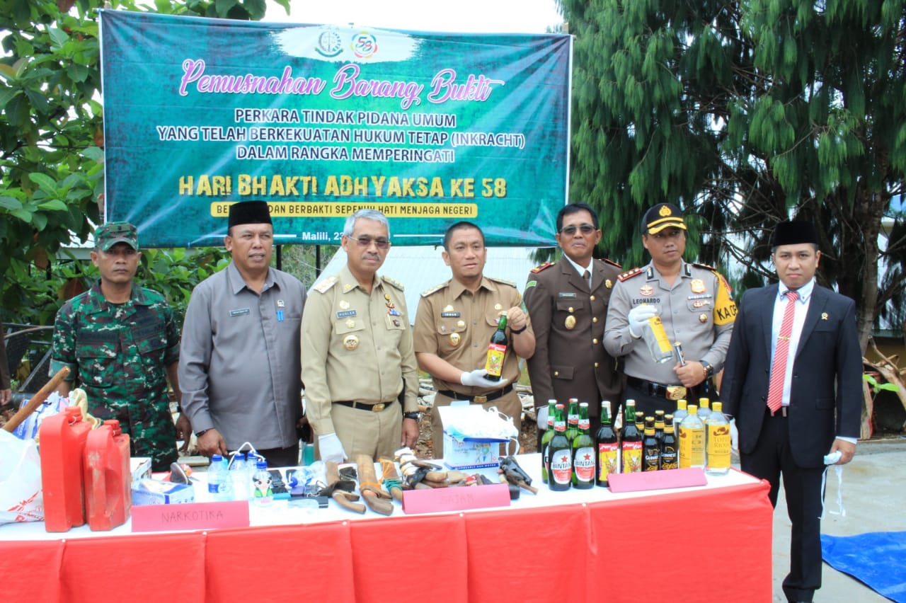 Selain melaksanakan upacara bendera, peringatan Hari Bhakti Adhyaksa ke-58 ini juga di rangkaikan dengan pemusnahan barang bukti yang telah berkekuatan hukum tetap (Inkracht), diantaranya senjata tajam, narkoba hingga minuman keras.