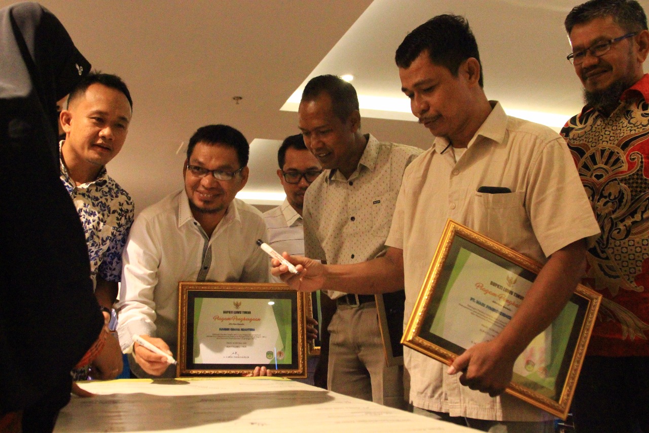 DLH Lutim juga menyerahkan reward dan penghargaan kepada 5 perusahaan yang dianggap paling patuh dalam melaporkan pelaksanaan RKL/RPL mereka.