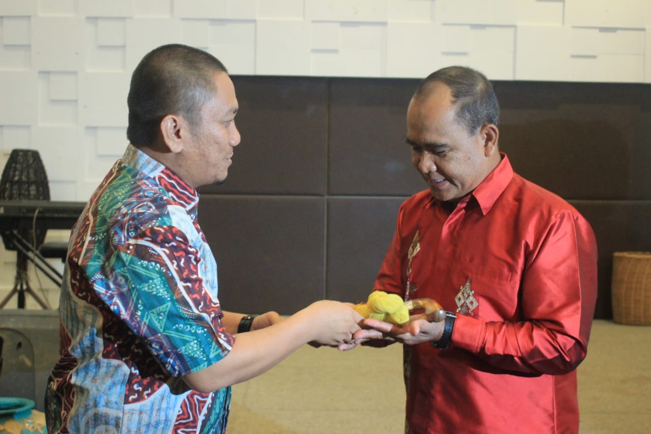 Wakil Bupati Luwu Timur, Irwan Bachri Syam, memberikan cinderamata berupa Badik kepada Pangdam XIV Hasanuddin, Mayor Jendral Surowahadi, saat malam ramah tamah yang digelar di Taman Antar Bangsa Sorowako, Kecamatan Nuha, Kamis (25/10/2018).
