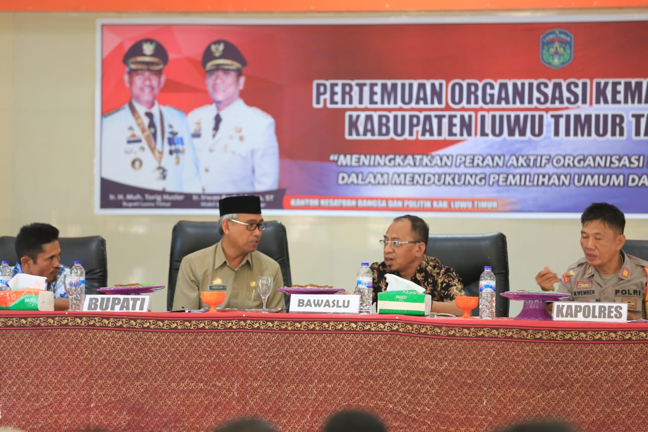 Dalam pertemuan yang juga dihadiri Ketua Bawaslu Provinsi Sulsel, Laode Arumahi, Kapolres Luwu Timur yang diwakili oleh Kasubag bin ops, AKP Martinus wemben, Anggota KPU Luwu Timur, Muh Abu, Ketua Bawaslu Luwu Timur, Rahman Atja, Kepala Kantor Kesbangpol, Guntur Hafid, Ormas dan OKP beserta undangan lainnya.