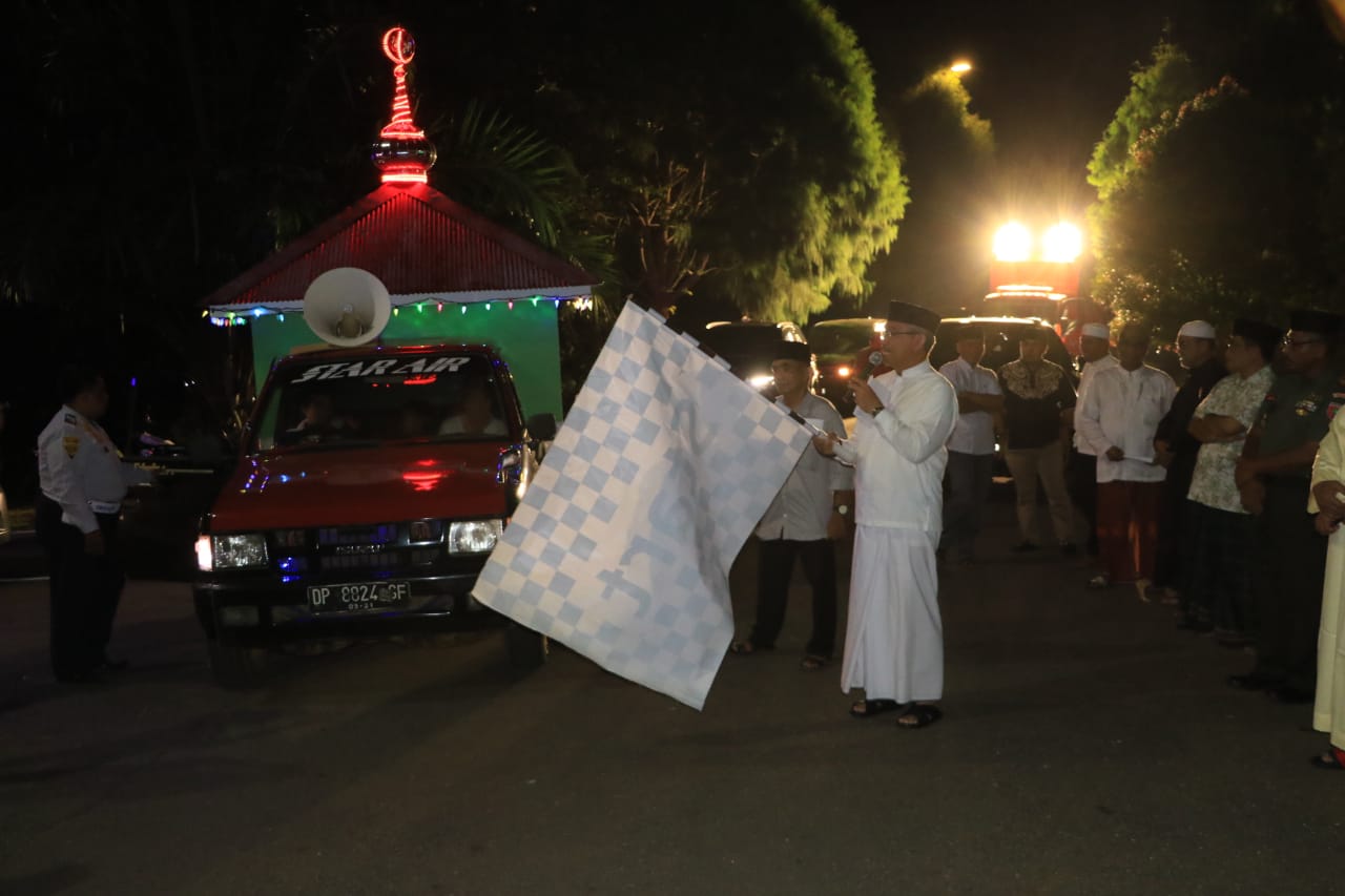 Bupati Luwu Timur, H. Muhammad Thorig Husler melepas peserta pawai takbir keliling menyambut Hari Raya Idul Adha 1440 Hiriyah, di depan Rumah Jabatan Bupati Luwu Timur, Jl. Andi Hasan To Hatta Desa Puncak Indah Malili, Sabtu, (10/08/2019) malam.