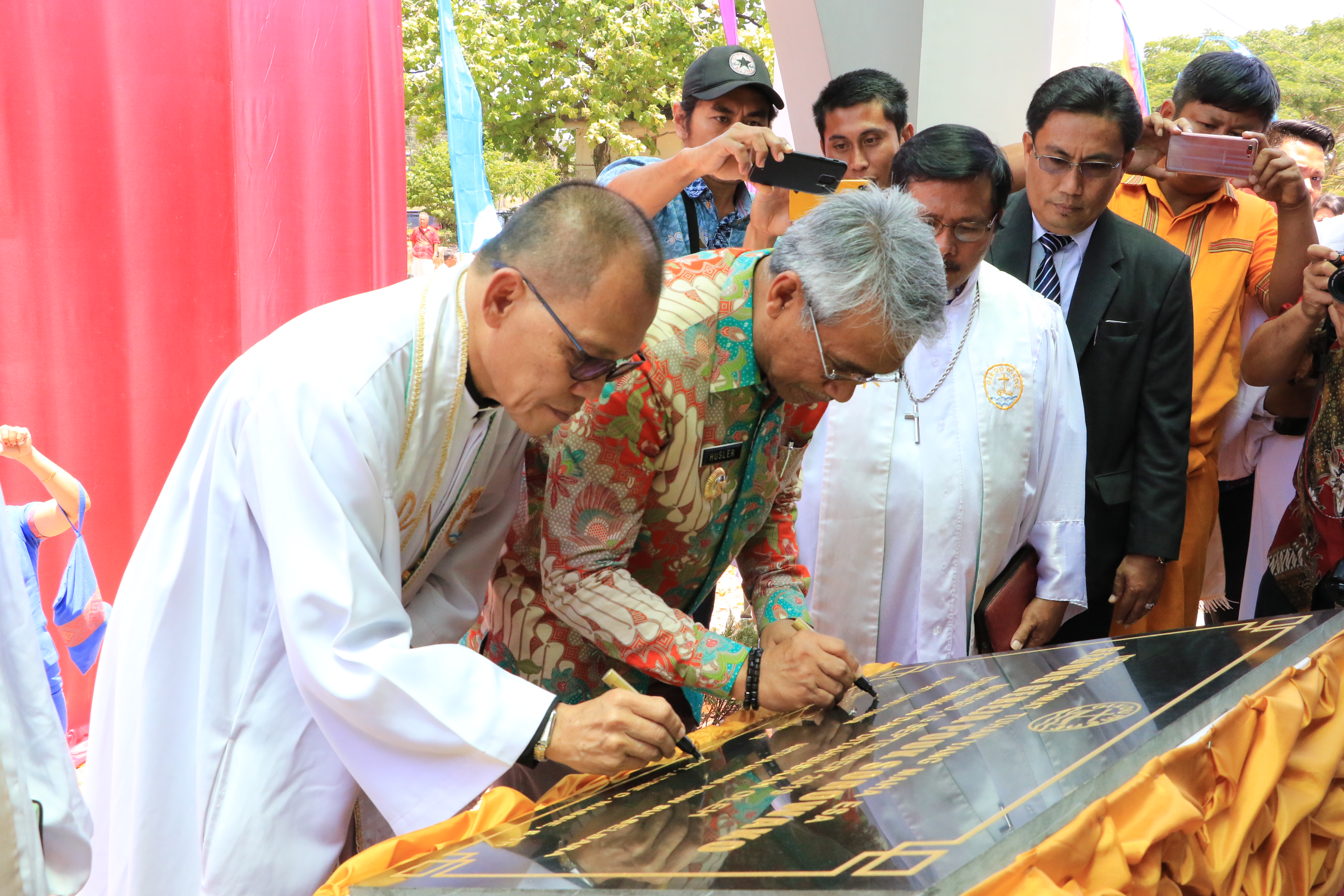 Prosesi peresmian diawali dengan penekanan tombol pembukaan papan nama Gereja dan pelepasan burung merpati lalu dilanjutkan dengan penandatanganan prasasti oleh Bupati Luwu Timur bersama Ketua Umum Persekutuan Gereja Indonesia Wilayah (PGIW) Sulsebara, Pdt. Adrie O Massie, S. Th.