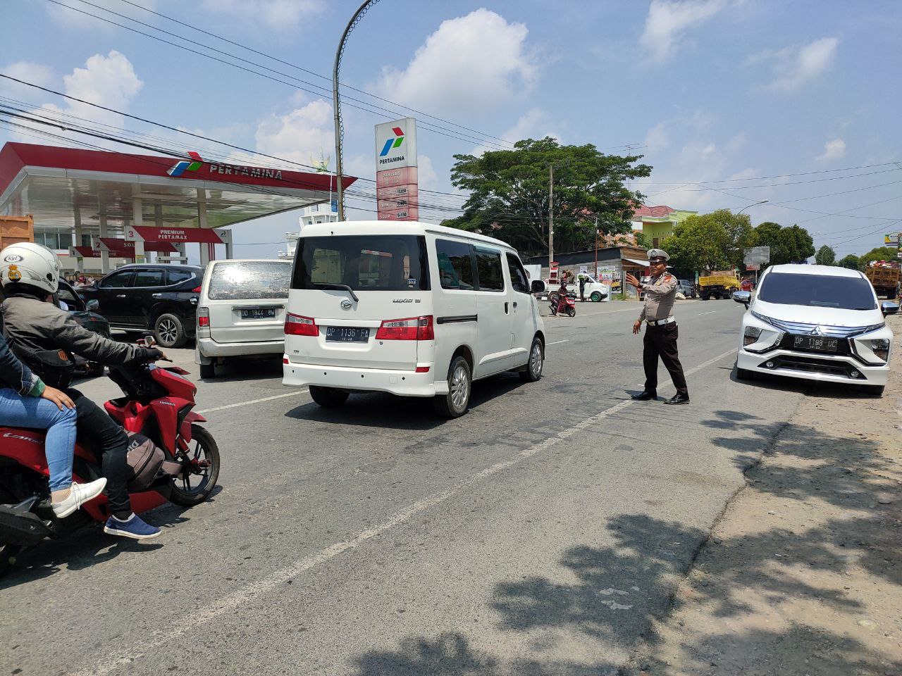 LUWU – Untuk mengurai kemacetan arus Lalulintas di depan SPBU, Belopa, sejumlah polisi dari Satuan Lalulintas disiagakan depan SPBU.