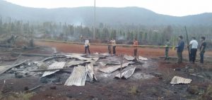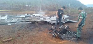 [Polisi memasang police line di salah satu rumah yang dibakar]