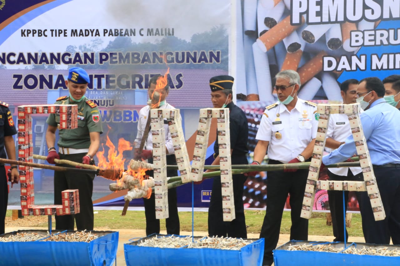 Sementara Kepala Kantor Pengawasan dan Pelayanan Bea dan Cukai (KPPBC) Tipe Madya Pabean C Malili, Mokhammad Slamet Imam Santoso dalam press releasenya mengungkapkan rincian barang yang dimusnahkan terhadap barang bukti hasil penindakan pada akhir tahun 2018 sampai dengan Semestet I 2019, sebagai berikut, 2.453.990 batang hasil tembakau berupa rokok dan 330 Botol minuman mengandung etil alkohol asal lokal dan impor, di mana perkiraan potensi kerugian negara yang berhasil diselamatkan sebesar Rp. 789 juta lebih.
