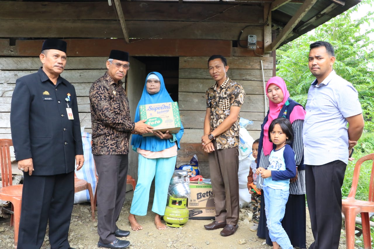 LUTIM – Didampingi Kadis Sosial dam P3A Kabupaten Luwu Timur, Sukarti, Camat Angkona, I Ketut Riawan dan Kades terpilih Wanasari, I Wayan Sardika, Bupati Luwu Timur, H. Muhammad Thoriq Husler melakukan silaturahmi ke rumah Sadirah (52) salah satu warga penerima bantuan sosial di Desa Wanasari Kecamatan Angkona, Sabtu (21/12/2019).