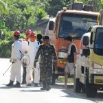 LUTIM – Bupati Luwu Timur, H. Muhammad Thoriq Husler memantau langsung penyemprotan desinfektan terhadap seluruh kendaraan serta mengecek suhu tubuh penumpang yang masuk diperbatasan Wilayah Kabupaten Luwu Timur, tepatnya di Desa Lauwo Kecamatan Burau, Selasa (24/03/2020).