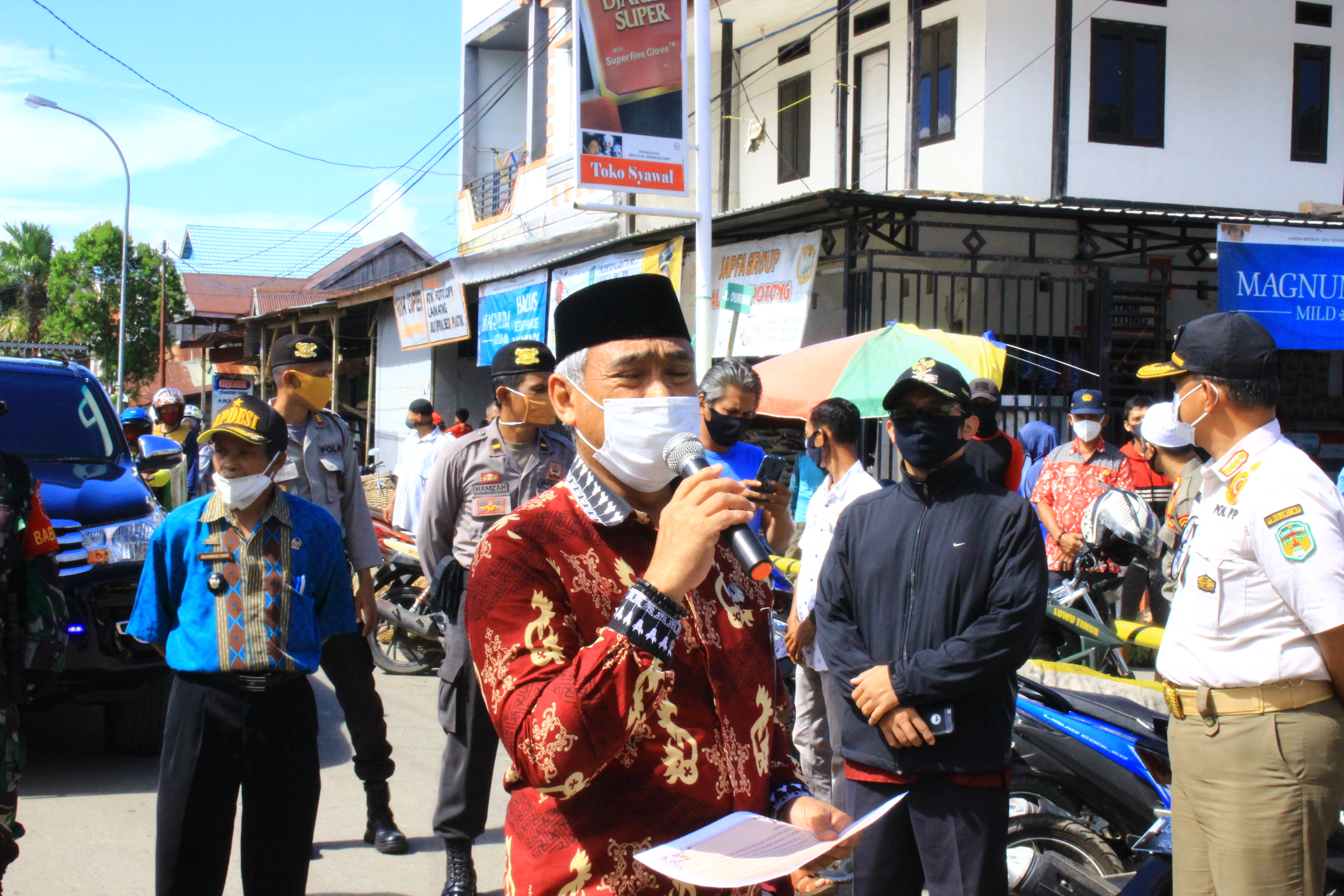 Himbauan itu langsung disampaikan Bupati didampingi Kapolres Luwu Timur, AKBP Indratmoko. Hal ini juga sejalan dengan maklumat Kapolri untuk mengajak masyarakat berperan aktif dalam mencegah virus mematikan tersebut.