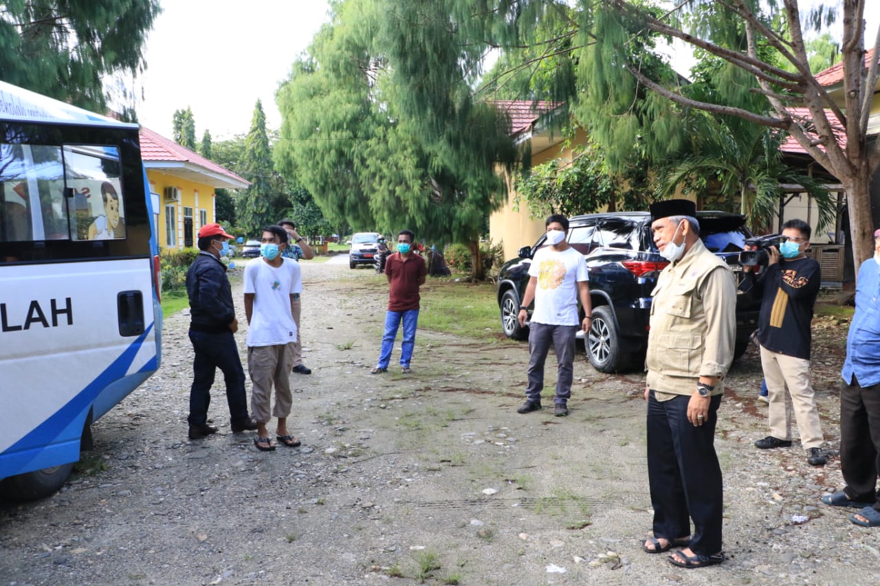 LUTIM – Bupati Luwu Timur, H. Muhammad Thoriq Husler didampingi Sekeretaris Tim Gugus Tugas Kab. Luwu Timur, Muh. Zabur dan Camat Burau, Sukri menyambut 11 orang warga Luwu Timur yang dikarantina di Makassar dan dijamu sarapan pagi di Rumah Jabatan Camat Burau, Senin (01/06/2020).