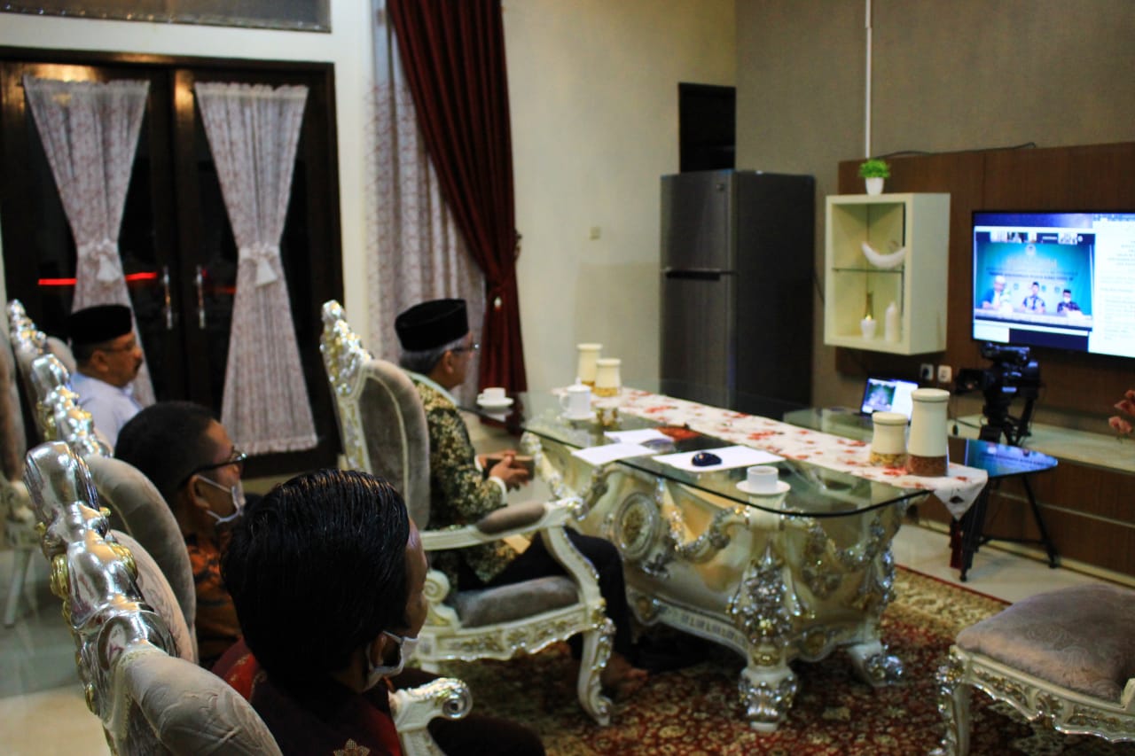 LUTIM – Bupati Luwu Timur, H. Muhammad Thoriq Husler mengikuti kegiatan Halal Bihalal Kerukunan Keluarga Luwu Raya (KKL Raya) se Indonesia yang dilakukan secara virtual atau video conference (vicon) di rumah Jabatan Bupati, Selasa (09/06/2020). Halal Bihalal KKL Raya yang rutin dilakukan dengan tatap muka setiap tahunnya, kini harus online akibat pandemi virus corona atau Covid-19.