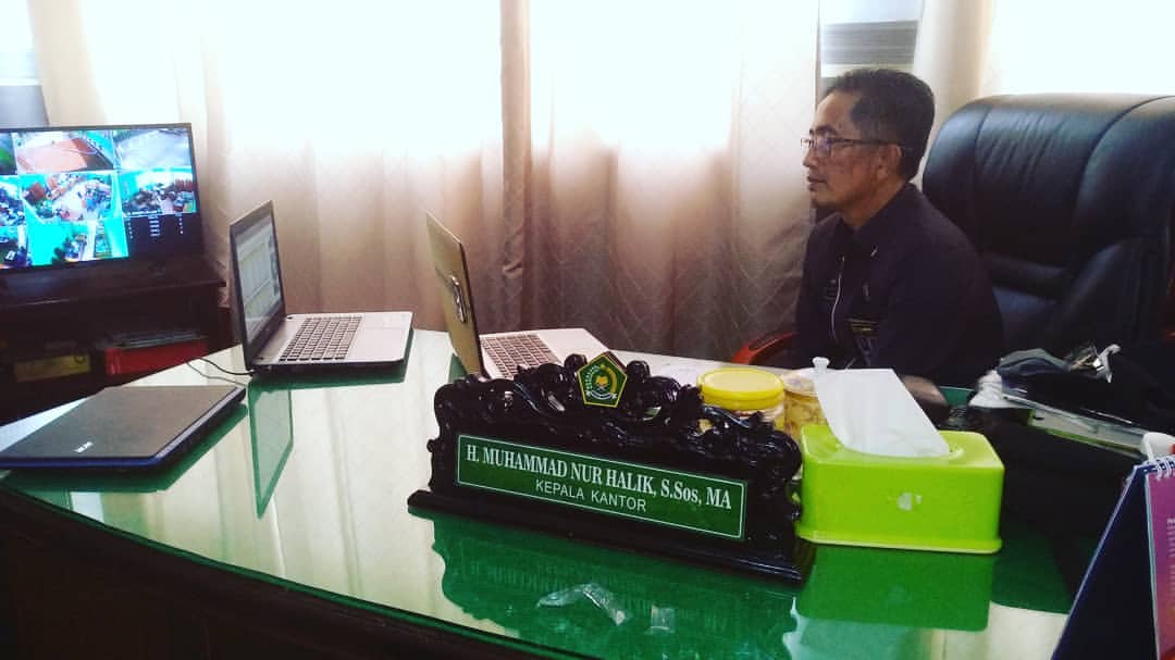 LUTIM — Kepala Kantor Kementerian Agama Kabupaten Luwu Timur, H. Muhammad Nur Halik mengikuti Rapat Virtual yang diselenggarakan oleh Kantor Wilayah Kementerian Agama Provinsi Sulawesi Selatan, Selasa (04/08/2020).