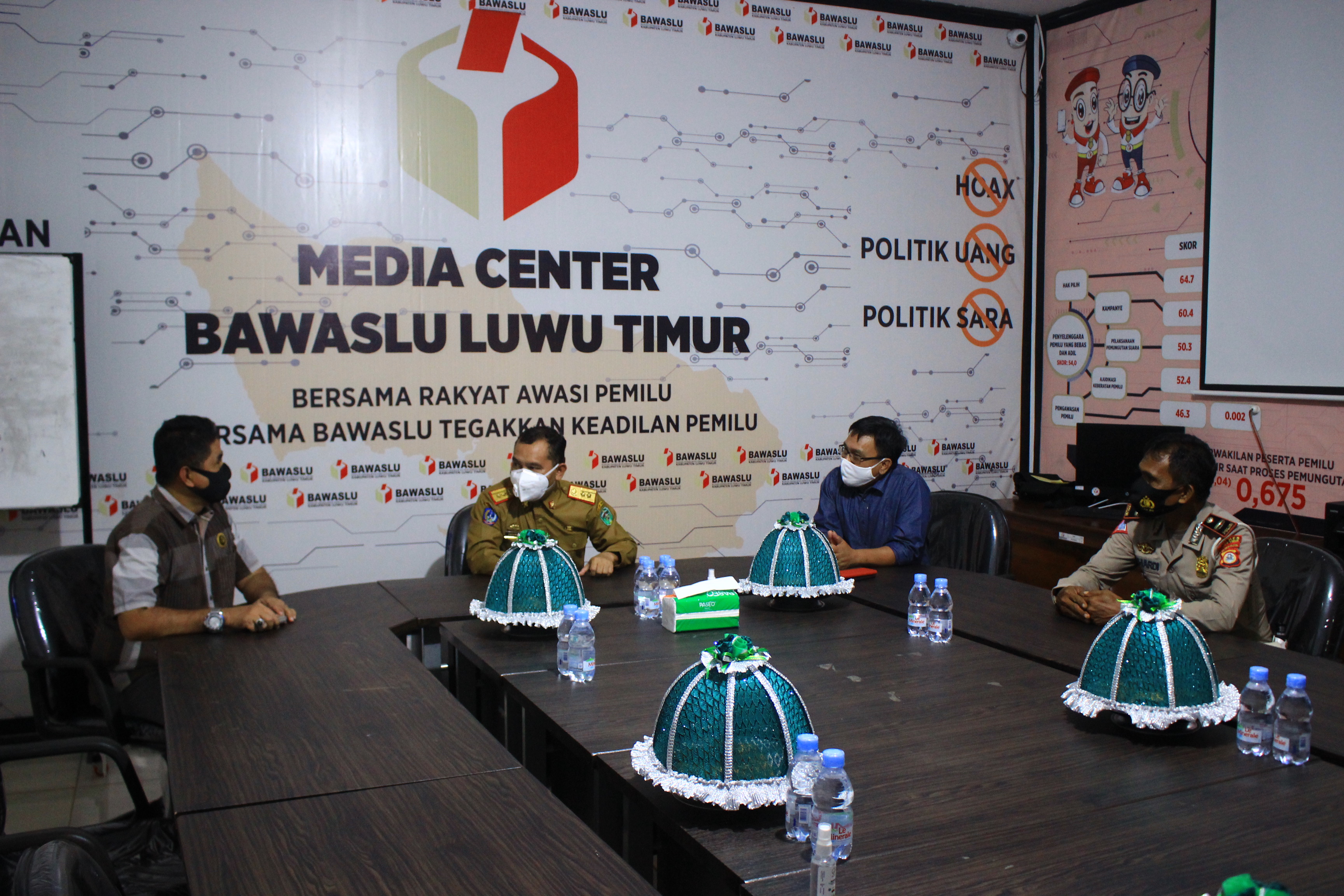 LUTIM – Setelah mengunjungi kedua pasangan calon Peserta Pilkada Serentak Tahun 2020, Penjabat Sementara (Pjs) Bupati Luwu Timur, Jayadi Nas, mengunjungi kantor Sekretariat Bawaslu Kabupaten Luwu Timur. Kedatangan Pjs. Bupati disambut Ketua Bawaslu Luwu Timur, Rahman Atja dan anggota Bawaslu lainnya, Senin (05/10/2020).