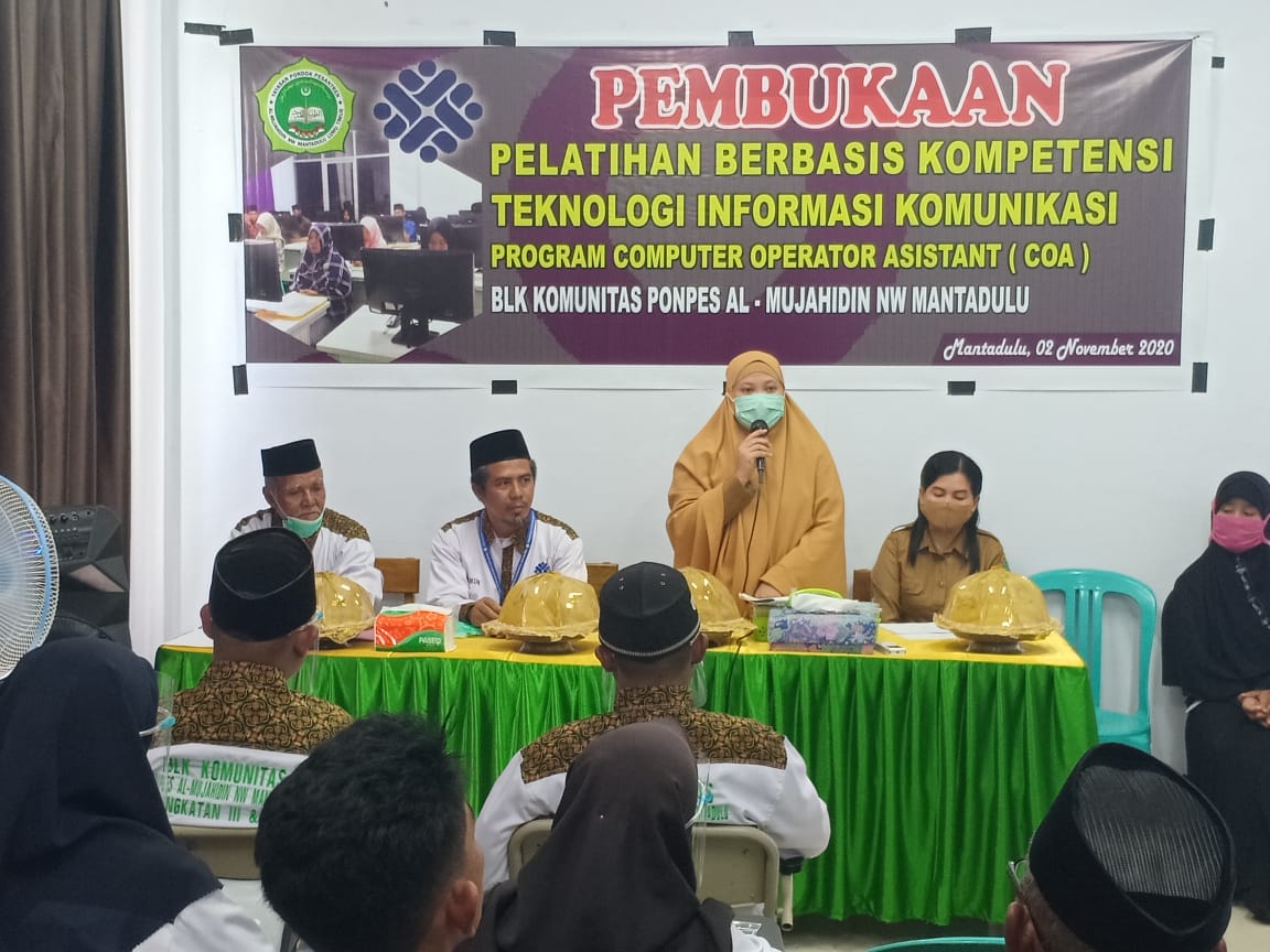 Kadis Transnakerin, Aini Endia Anrika dalam sambutannya mengungkapkan bahwa, BLK Komunitas Ponpes Al-Mujahidin Nahdlatul Wathan Mantadulu dan BLK Komunitas Ponpes Barokatul Ikhlas Nahdlatul Wathan Rinjani didirikan pada tahun 2019.