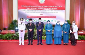 Pengambilan Sumpah Jabatan dan Pelantikan Wakil Bupati Luwu Timur periode 2021-2026, Jumat (26/02/2021), di Baruga Karaeng Pattingalloang (Rujab Gubernur Sulawesi Selatan) Jalan Sungai Tangka, Makassar.