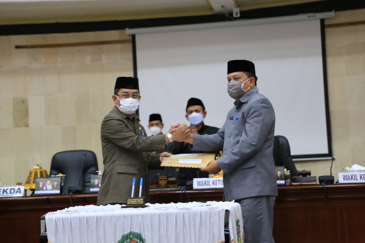 “Atas nama Pemerintah daerah saya ucapan terima kasih dan apresiasi yang setinggi-tingginya atas kerjasama dan koordinasi yang baik sehingga ke Lima Ranperda yakni :