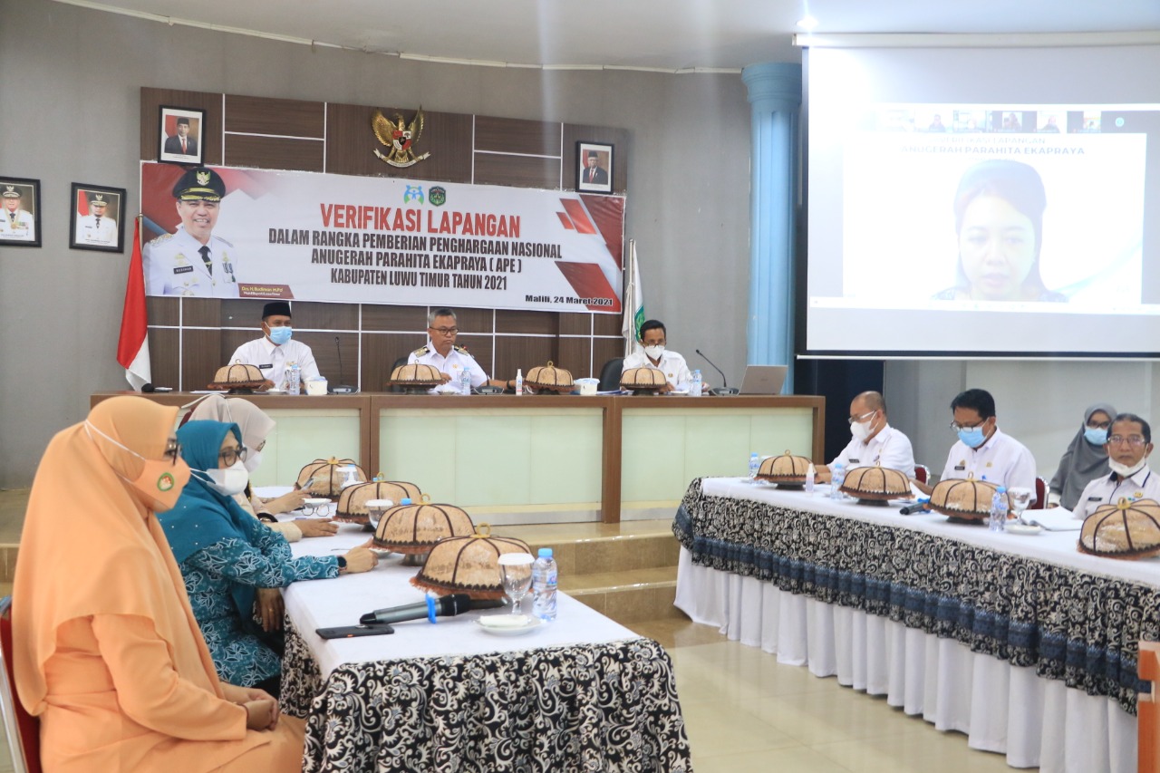 Wakil Bupati dalam kesempatan ini menyampaikan antara lain ucapan terima kasih kepada Kementerian Pemberdayaan Perempuan dan Perlindungan Anak Republik Indonesia khususnya Deputi Bidang Kesetaraan Gender yang telah memilih Kabupaten Luwu Timur sebagai salah satu nominator calon penerima penghargaan Anugerah Parahita Ekapraya (APE) Tahun 2021.