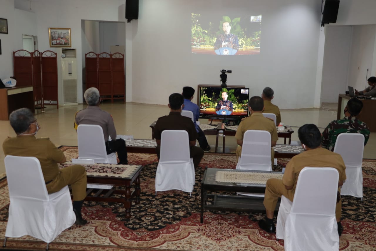 Pada kesempatan tersebut, Presiden juga menyampaikan beberapa hal terkait pemulihan kesehatan dan ekonomi di masa pandemi ini, karena saat ini pencegahan atau penanganan pasien Covid-19 terus dilakukan sehingga kasus aktif Covid-19 dapat berkurang. Untuk itu, Pemerintah daerah harus selalu melakukan sosialisasi protokol kesehatan. Program vaksinasi-vaksinasi juga diharapkan terus berjalan dengan baik dan sasarannya jelas, termasuk pelayanan vaksin kepada lansia yang mulai berjalan.